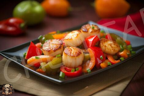 The heart of the Stir-Fried Peppers with Scallops is the scallops, often hailed as the treasures of the sea. These delicate, round seafood morsels are revered for their natural sweetness and saltiness. The scallops are perfectly seared in a hot pan, creating a golden crust that adds delightful crispiness to every bite. Their tender texture pairs perfectly with the bell peppers’ crunchiness, making them a dynamic and satisfying combination.